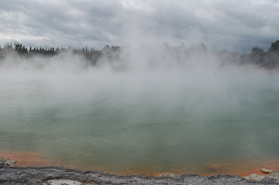 We drove to Wai-O-Tapu about 20 minutes away, and parked up at the visitor’s centre. The thermal pools, bubbling muds and steaming grounds were very impressive, and to think they were natural was astonishing.